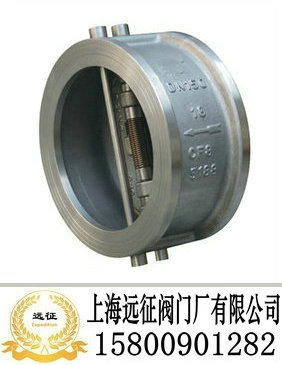上海远征阀门厂生产的对夹止回阀,驱动方式可选用无驱动,连接方式可选用对夹,结构形式可选用蝶式,密封结构可选用软密封、硬密封,压力范围PN0.1-32Mpa,公称通径为DN15-1000mm,材质可选用铸铁、铸钢、不锈钢。